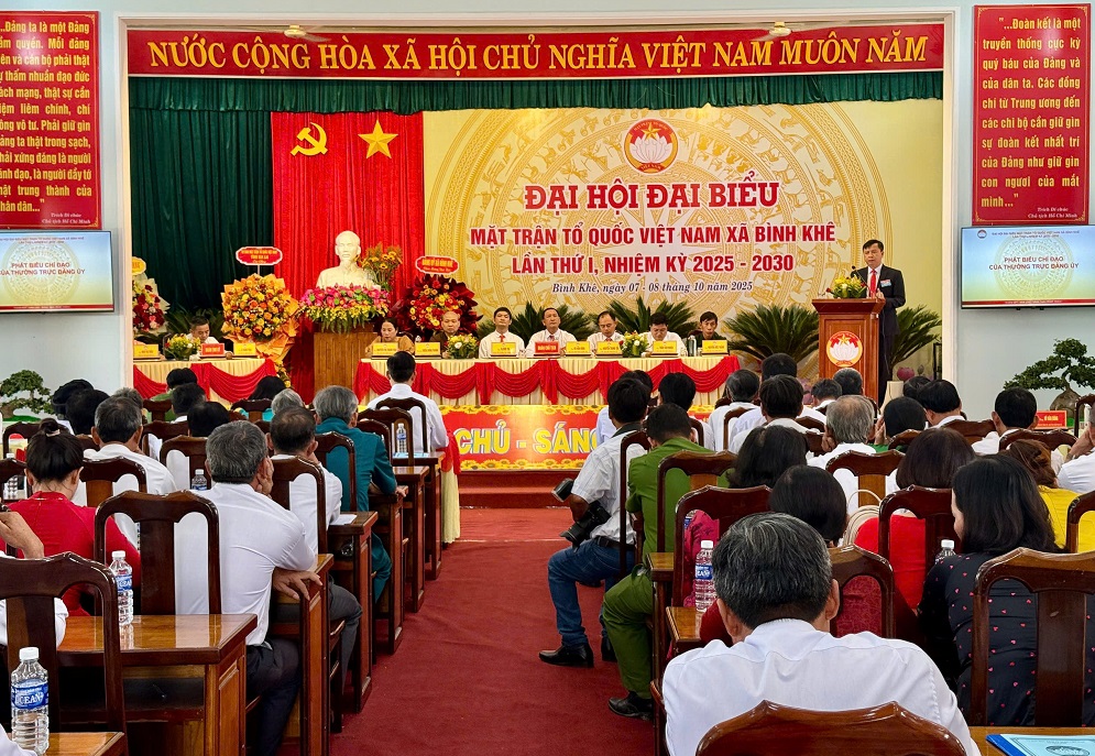 Trong hai ngày 07 và 08/10/2025, Ủy ban Mặt trận Tổ quốc Việt Nam xã Bình Khê đã tổ chức thành công Đại hội Đại biểu Mặt trận Tổ quốc Việt Nam xã lần thứ I, nhiệm kỳ 2025 - 2030. Đây là sự kiện chính trị có ý nghĩa quan trọng, đánh dấu bước phát triển mới của công tác Mặt trận sau khi xã Bình Khê được thành lập trên cơ sở sáp nhập hai xã Tây Thuận và Tây Giang.