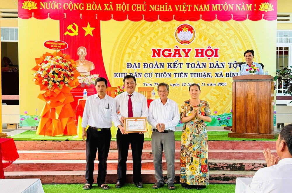 Nhằm ghi nhận tinh thần đoàn kết, trách nhiệm của cộng đồng, tại ngày hội, UBND xã Bình Khê đã trao Giấy khen của Chủ tịch UBND xã cho cán bộ và nhân dân thôn Tiên Thuận vì đã có thành tích xuất sắc trong công tác phòng, chống và khắc phục hậu quả cơn bão số 13 vừa qua.