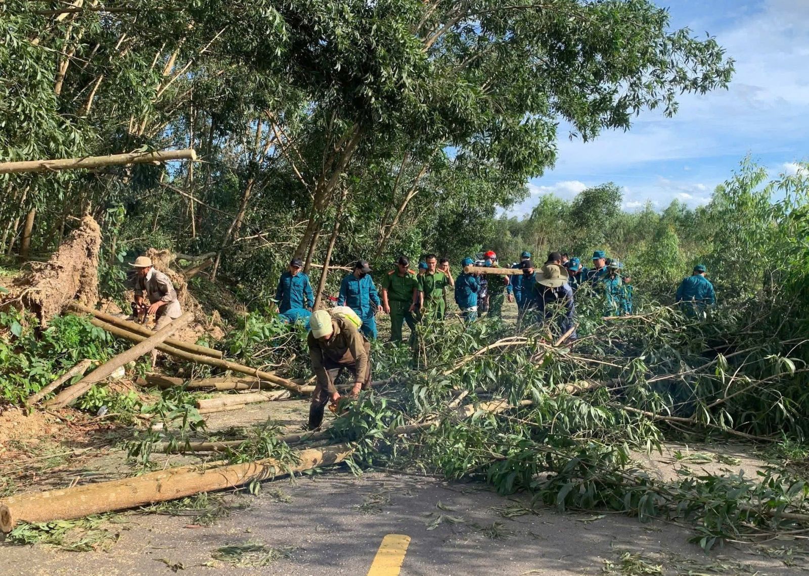 Hàng trăm lượt cán bộ, chiến sĩ công an, bộ đội, lực lượng công nhân và đoàn viên thanh niên đã không quản khó khăn, mưa gió, đồng loạt ra quân giúp dân. Các lực lượng đã hỗ trợ các cơ sở y tế, trường học, cơ quan, đơn vị nhanh chóng khôi phục hoạt động; đồng thời giúp nhân dân dọn dẹp cây cối gãy đổ, thu gom rác thải, sửa chữa nhà cửa, thu hoạch hoa màu bị ngập úng.
