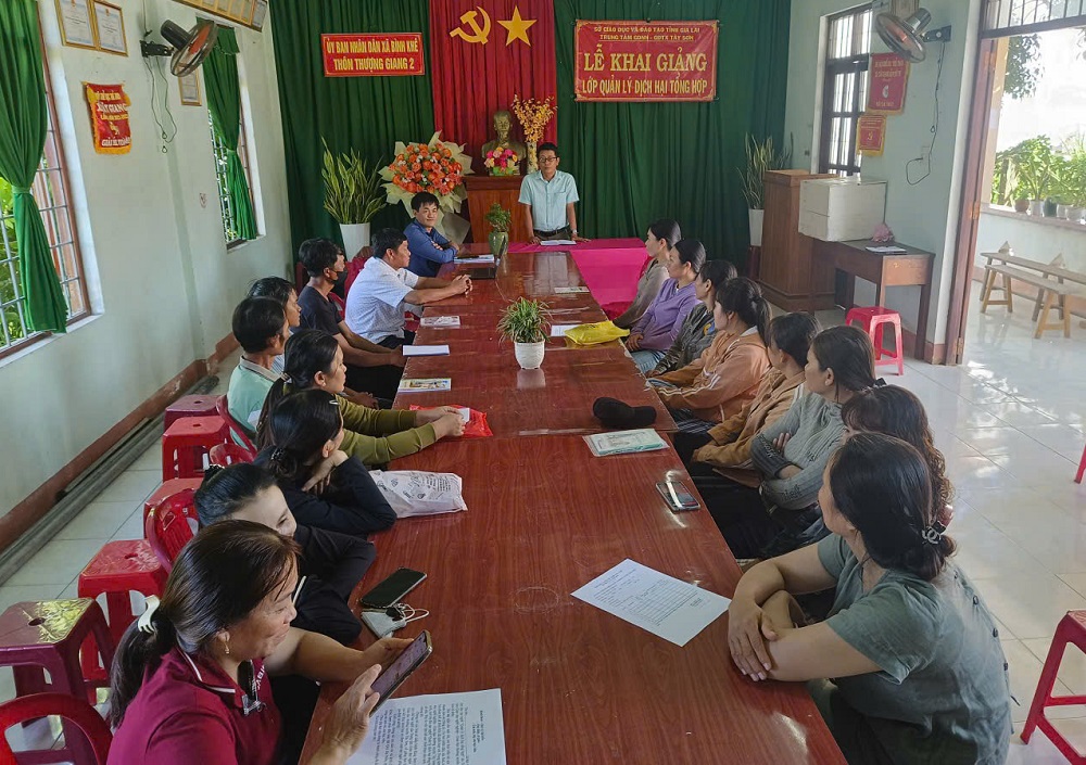 Sáng ngày 02/10/2025, tại Nhà văn hóa thôn Thượng Giang 2, UBND xã phối hợp với Trung tâm Giáo dục nghề nghiệp - Giáo dục thường xuyên Tây Sơn tổ chức khai giảng lớp đào tạo nghề “Quản lý dịch hại tổng hợp” cho 35 học viên là hội viên phụ nữ, nông dân thuộc diện hộ nghèo, cận nghèo và có thu nhập thấp trên địa bàn xã Bình Khê.